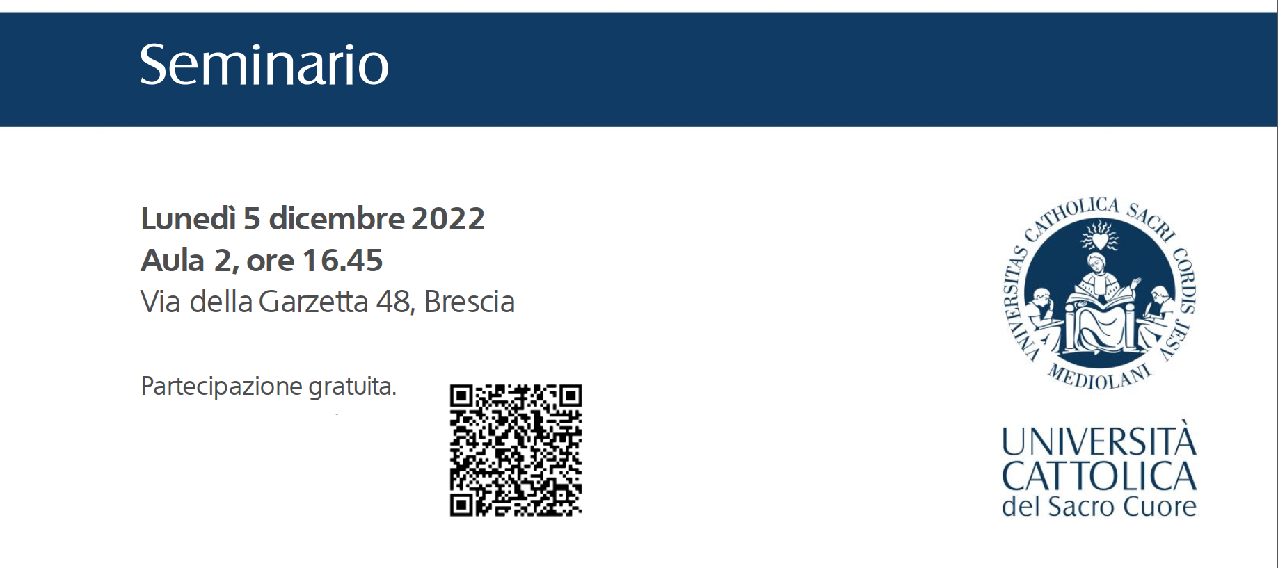 Lunedì 5 dicembre 2022 presso la sede dell’Università in via della Garzetta 48 si terrà il seminario