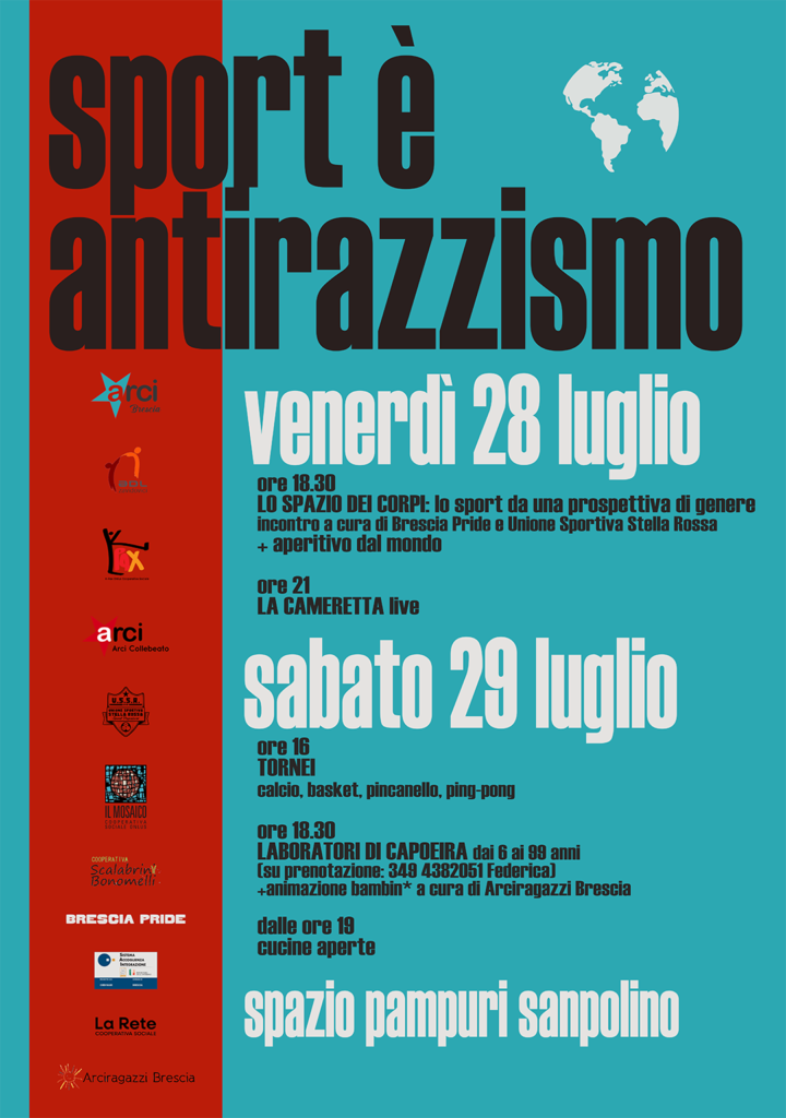La cooperativa socia Il Mosaico è tra i partner dell’evento “Lo sport è antirazzismo” che si svolgerà Venerdì 28 Luglio e Sabato 29 Luglio per la terza edizione presso lo Spazio Pampuri Sanpolino.